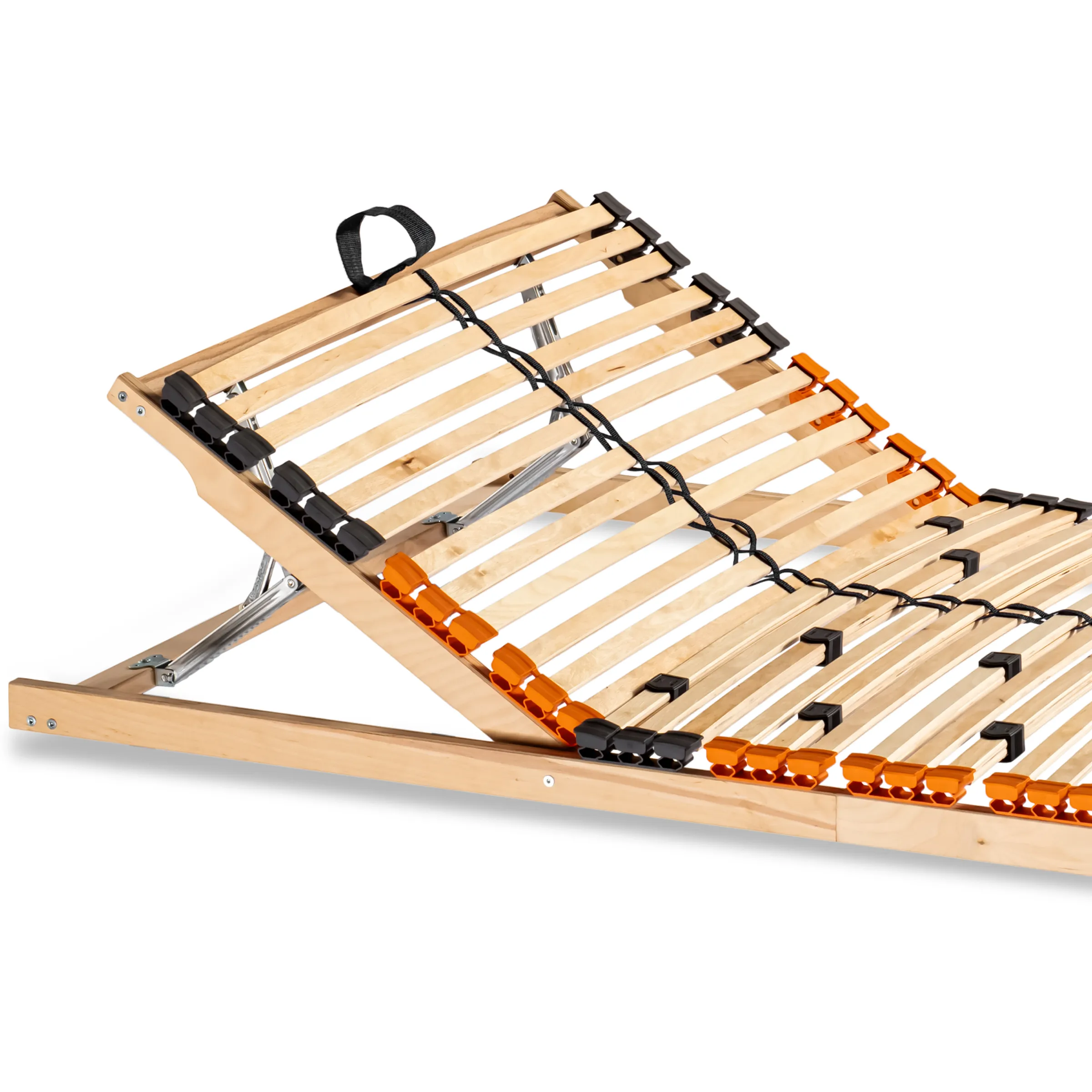 Die Kombination aus massiven Querholmen und flexiblen Federleisten sorgt für ein ausgewogenes Liegegefühl – robust und komfortabel zugleich.